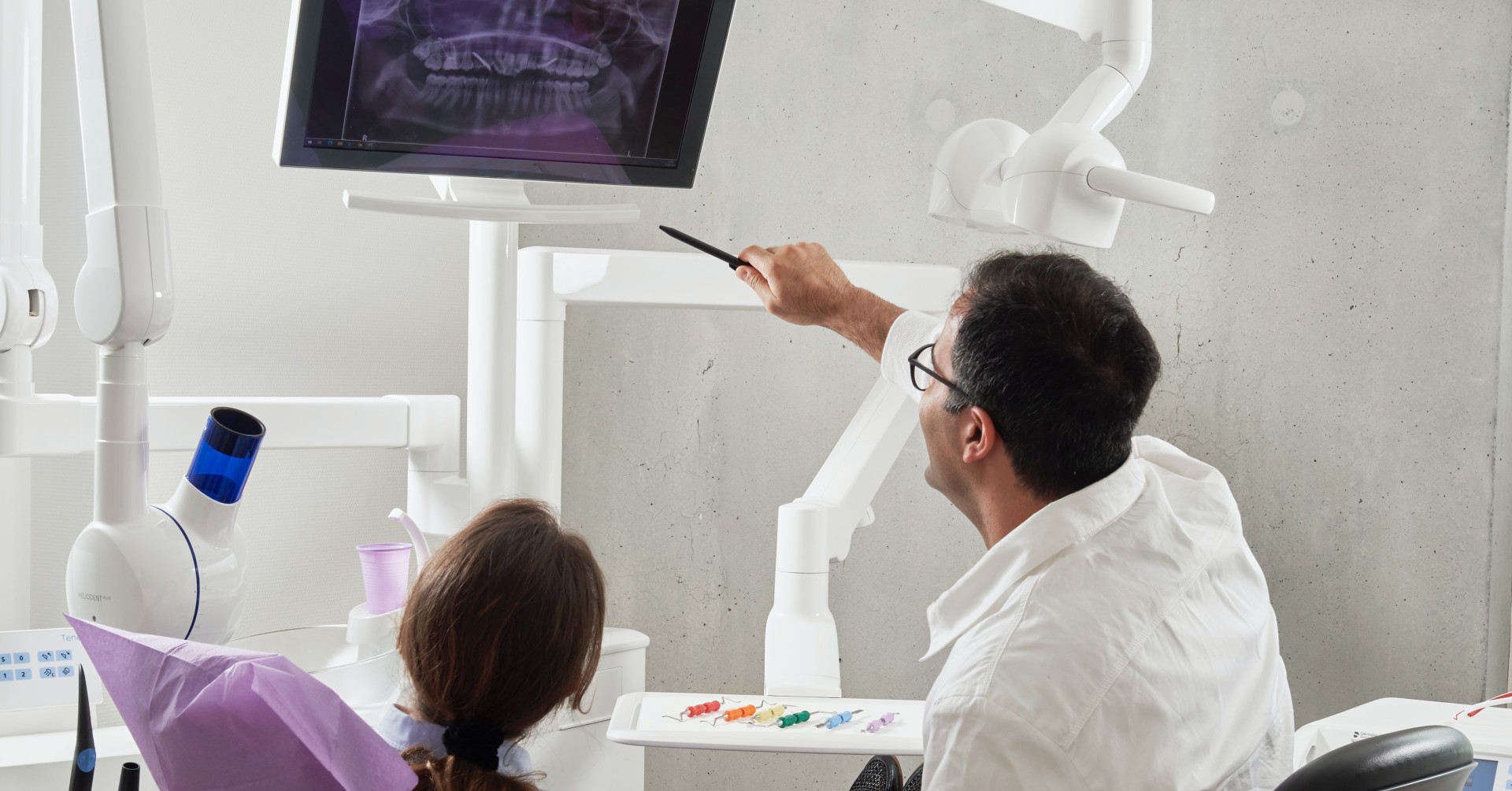 Digitale Zahnmedizin: Darunter versteht man den Einsatz digitaler Verfahren und Technologien in der Zahnarztpraxis von der Diagnostik über die Behandlungsplanung bis zur Verlaufskontrolle. Darüber hinaus sind auch organisatorische Abläufe in Zahnarztpraxen wie Terminvereinbarung oder Anamnesebögen inzwischen häufig digital. Auch in Zahntechnik-Laboren werden seit vielen Jahren digitale Verfahren angewendet, zum Beispiel bei der Fertigung von Zahnersatz. Und nicht zuletzt ist es hilfreich, wenn Zahnärzte, Mitbehandler und Zahntechniker auf digitalem Wege Informationen austauschen.